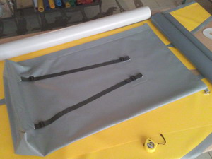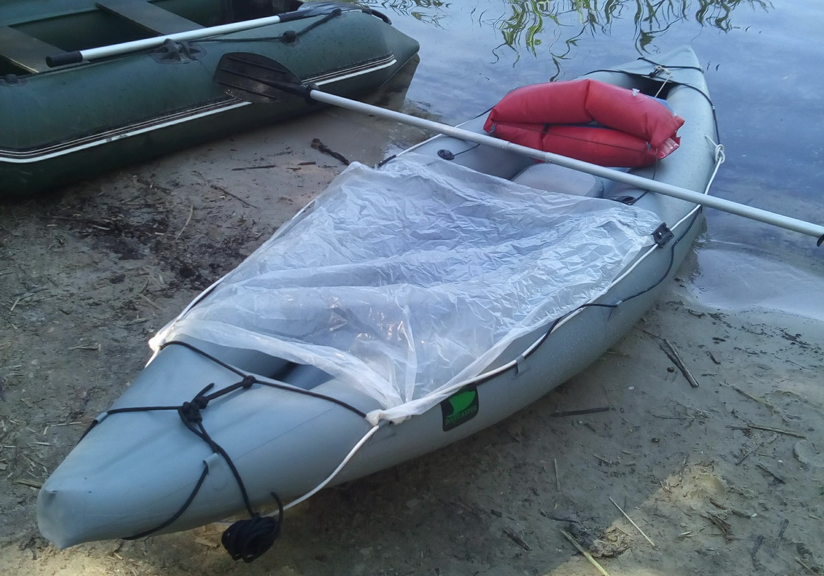 Сумка для байдарки выполнена в виде гермомешка с герметичной закруткой и может использоваться для хранения вещей во время похода. Ткань PVC 620-650 г/м2. Цена: на одноместную - 26 €; двух и трехместная 29 €.