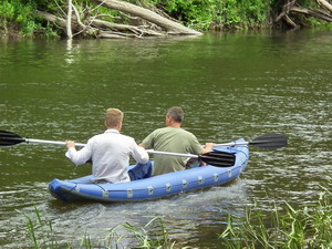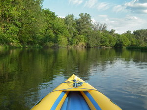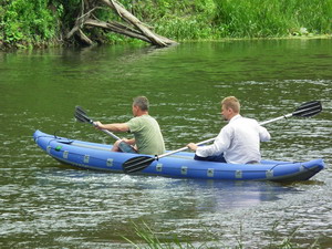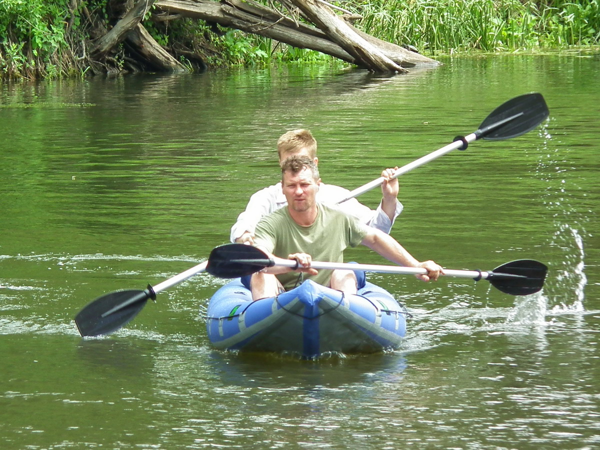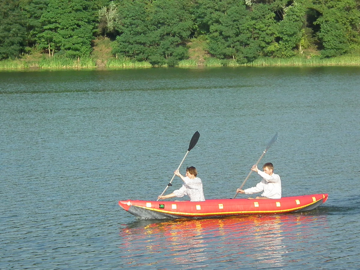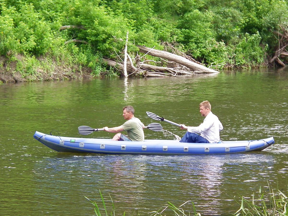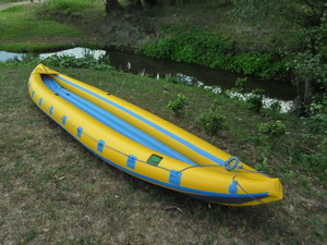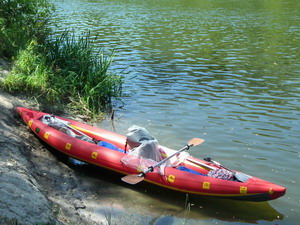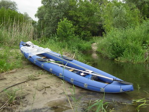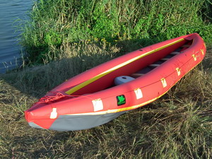 Надувная байдарка с надувным килем имеет хорошую длину смачиваемой поверхности и килеватость, что приближает ее курсовую устойчивость к жесткокорпустным плавсредствам.