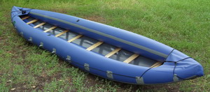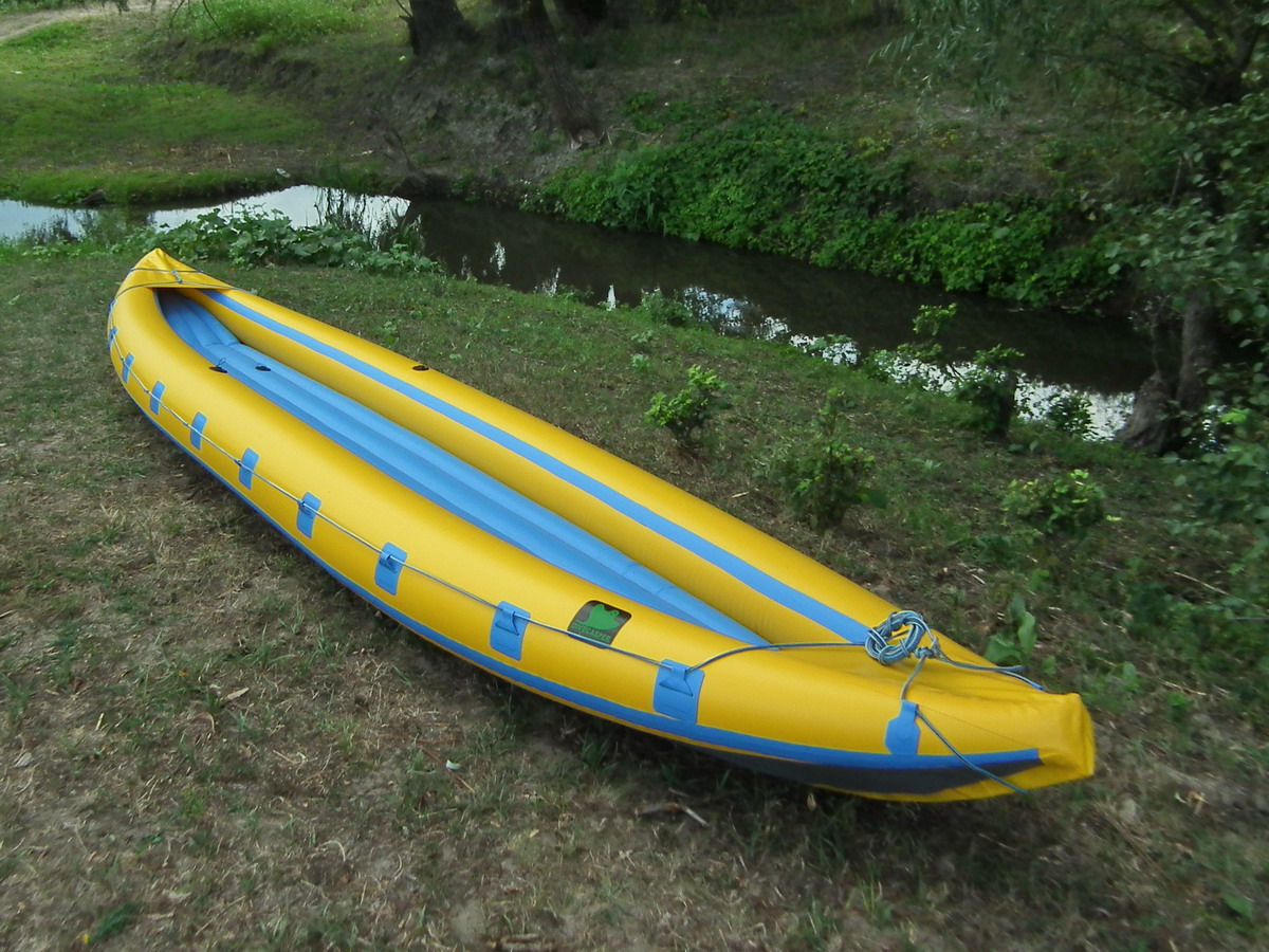 Длина 4,5м - 4,8м. Ширина 0,90м - 1м. Между бортами 0,37-0,42м. Байдарка имеет надувное дно. Для катания по горным рекам. Надувное дно представляет собой отдельное изделие, помещаемое внутрь байдарки, нижняя форма вкладыша создает более килеватую форму дна байдарке. При этом надувной вклдыш защищен силовым дном байдарки. Байдарка имеет наилучшие характеристики в классе байдарок с надувным дном, так как надувное дно не вклеено.