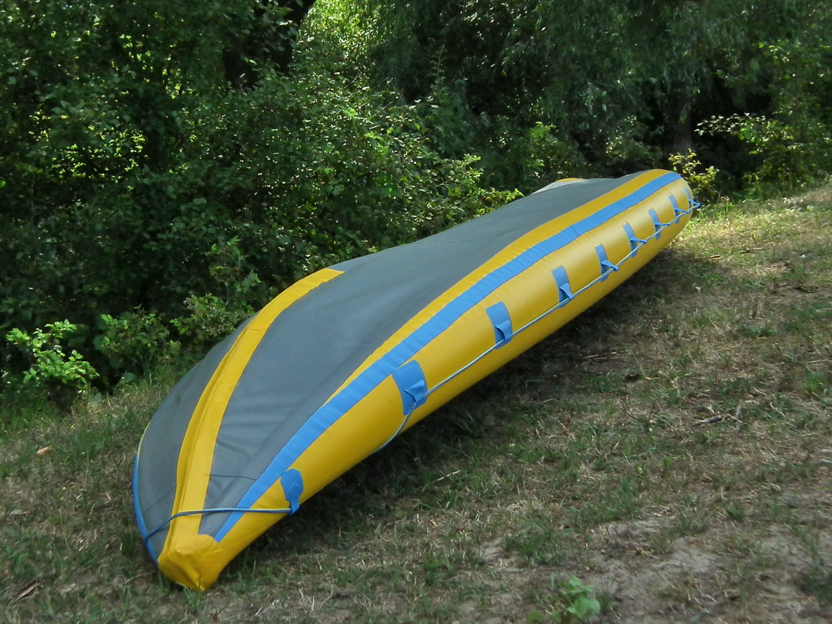 Байдарка изготовлена из армированного синтетической тканью газонепроницаемого PVC разных плотностей (лодочная ткань плотностью от 800 до 1100 г/м2. Boatex - Корея, Mehler Plastel - Чехия).